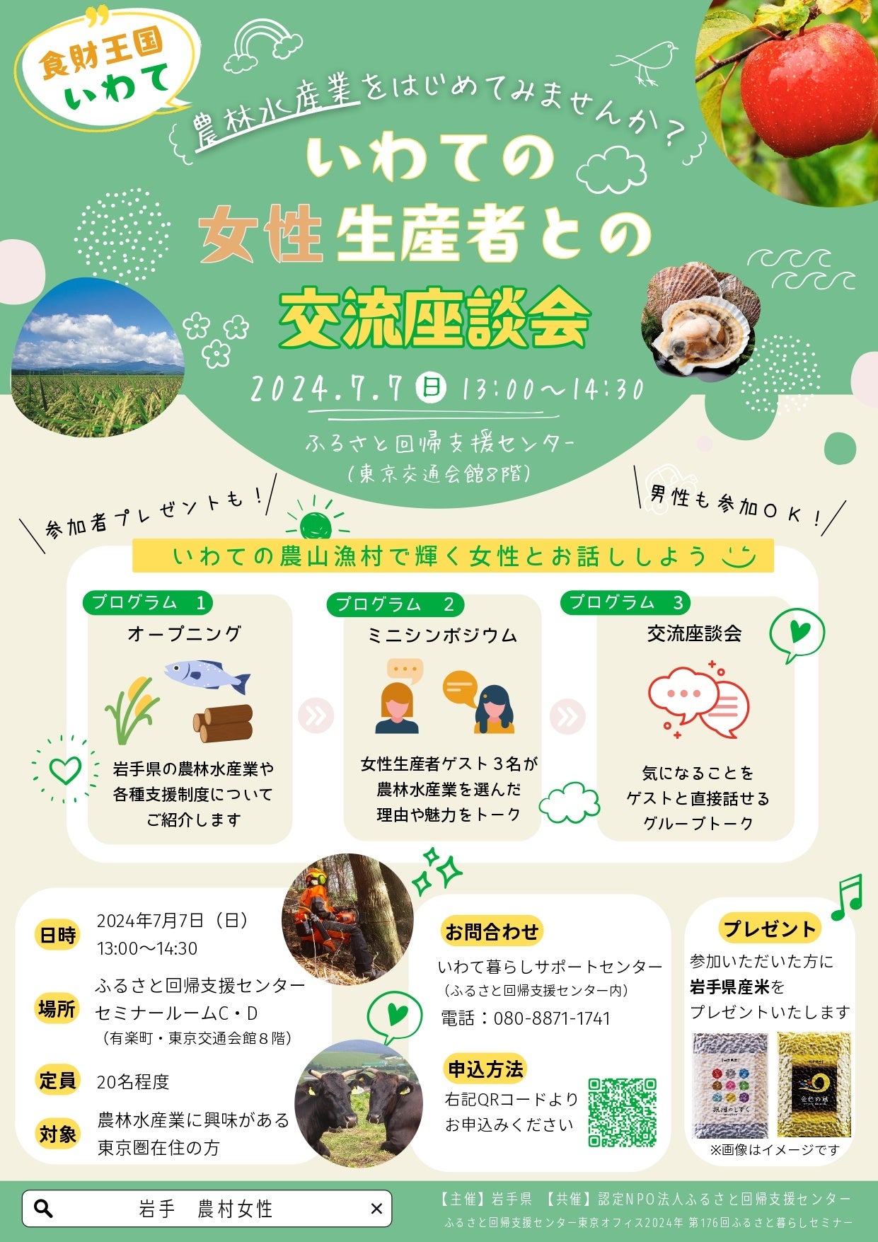 I・J・Uターンをお考えの方に農林水産業の魅力をお伝えするため、岩手在住の女性生産者との交流座談会を東京で開催します!