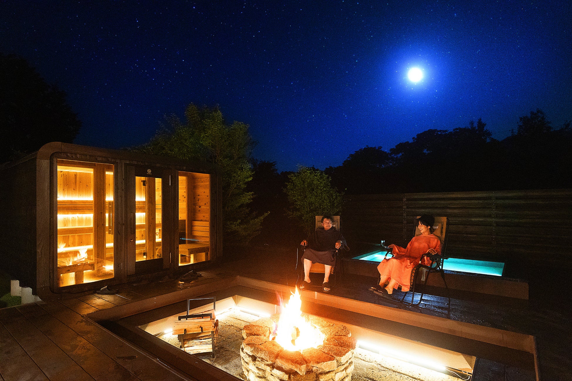 また、「日本一の名水の里」として知られる北杜市白州町の水を使用した大型の水風呂や、眼前に広がる大自然を満喫できるよう配置されたインフィニティチェア、気の置けない仲間と焚火をしながら語れるファイヤーピットやBBQ用大型ガスグリルなどを完備し、忙しい毎日を送る皆様に極上の癒しを提供します。