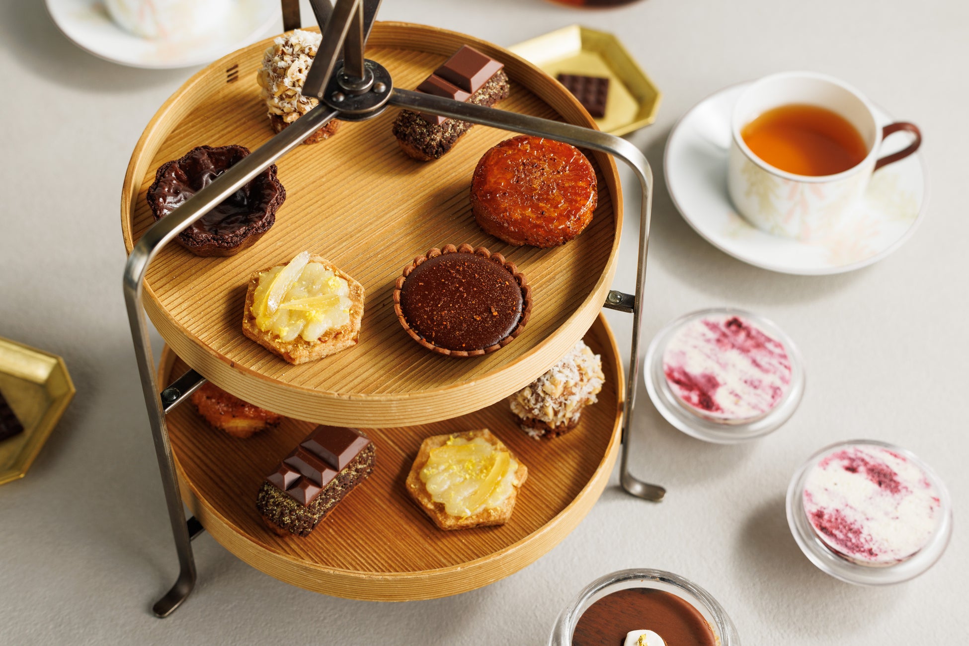 ショコラ尽くしのアフタヌーンティー「ル・グテ」の新作秋メニューでは、日本産とフランス産のマロンを合わせたショコラムースをはじめ、様々な組合せでショコラの美味しさを堪能できるデザートをご用意しています。「ル・グテ」とご一緒に紅茶やコーヒーをどうぞ。