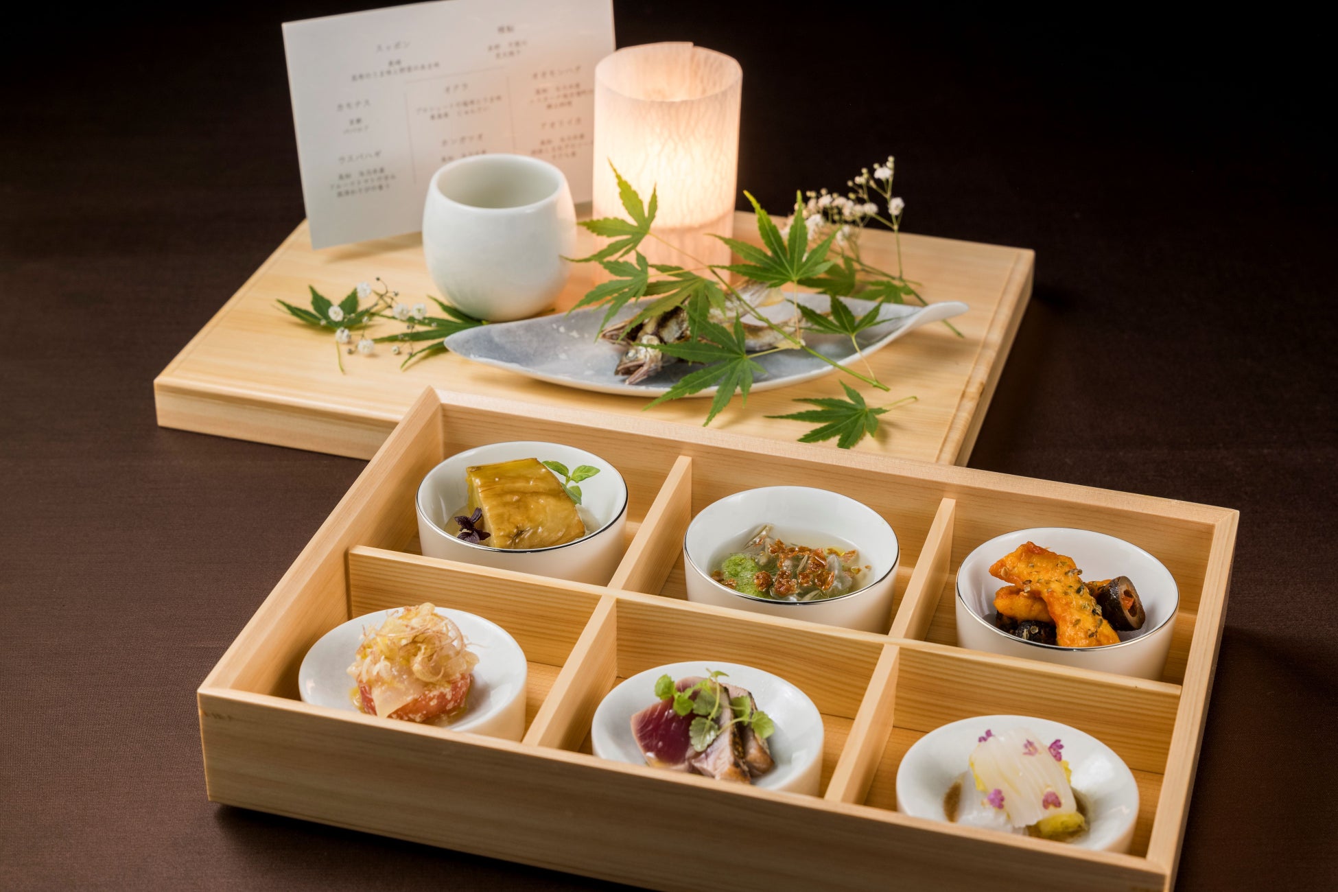 スペシャリテはランチ、ディナー共にご用意している八寸!魚は豊洲を通さず高知県与力水産より直送の魚を楽しめます!