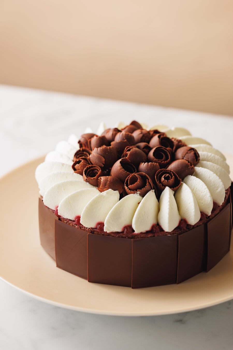 ”黒い森”をイメージしたアルザス地方の伝統的なショコラケーキ「フォレノワール」をホールでご用意しました。グリオットチェリーと濃厚なショコラの組合せが絶妙なバランスです。¥7,020 *渋谷スクランブルスクエア限定