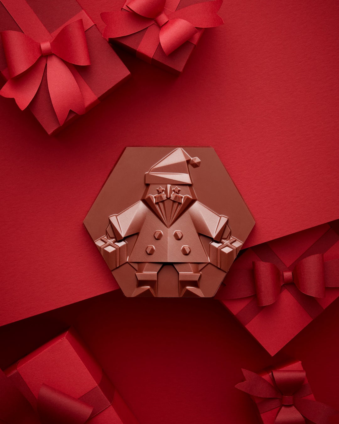ブランドを象徴する6角形にサンタクロースを描いたショコラ。中にはスパイスを使ったクリスマスの定番菓子「パンデピス」とヘーゼルナッツのプラリネがたっぷり詰まっています。クリスマスならではの味をご堪能ください。クリスマス限定パッケージ付き。¥3,348