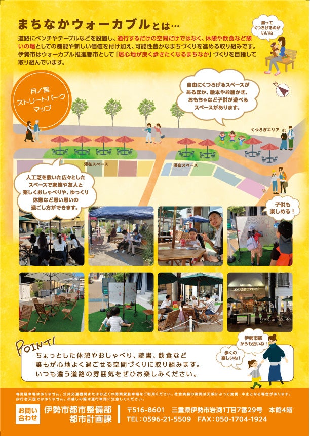 伊勢市も「居心地が良く歩きたくなるまちなか」を目指し、まちなかウォーカブル推進事業に取り組みます。