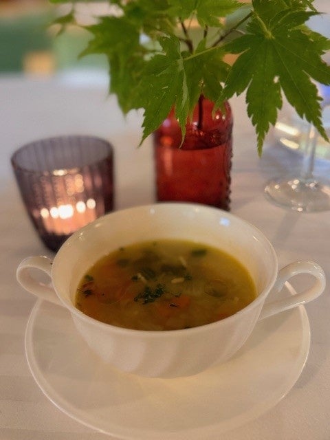佐渡産の旬の野菜をたっぷりと使用したスープ