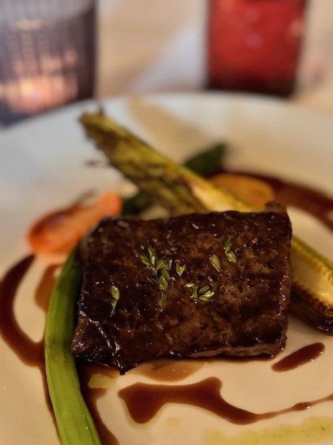 メインディッシュは貴重な佐渡牛のランプステーキ