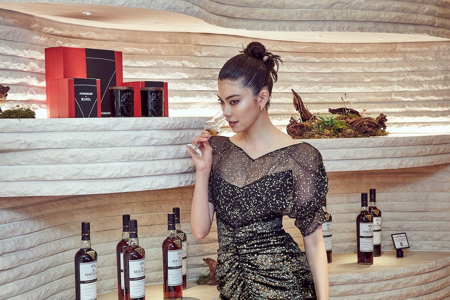 このオープニングを記念し、韓国の俳優イ・ジェウク氏、リョウン氏、そして香港の女優ルイーズ・ウォン氏を招いた開幕式を開催しました。開幕式では、「ザ・マッカラン・ハウス」のファサードで魅惑的に披露された見事なエアリアルダンスパフォーマンスの後、リボンカットが行われ、伝統と象徴を表すモダンな獅子舞でセレモニーは締めくくられました。セレモニーの後に続いたカクテルパーティでは、日本のトップモデル森星氏と俳優の浅野忠信氏も店内を見て回りながら、新たな店舗のオープニングを祝いました。
