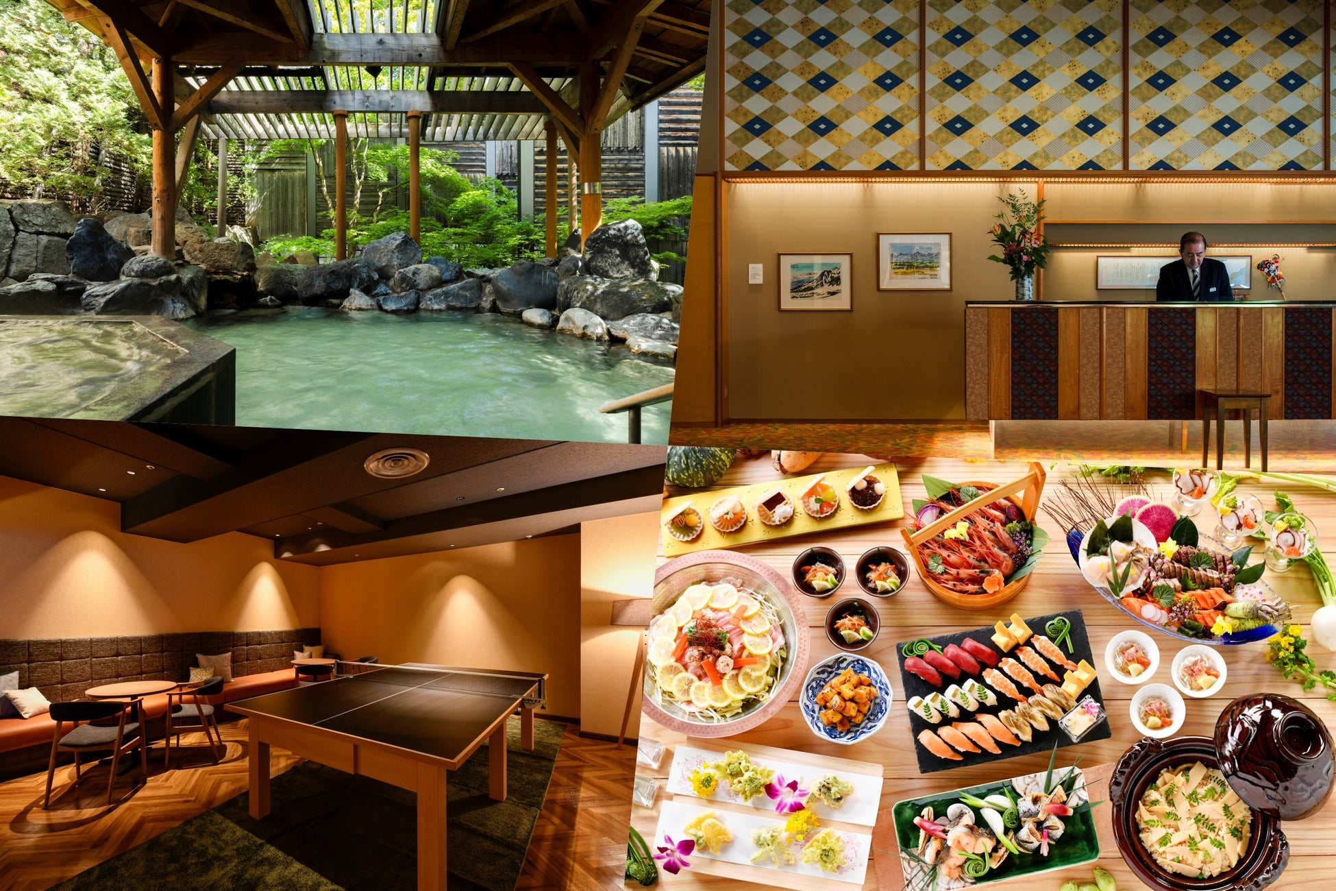 札幌市中心部より車で約50分。定山渓温泉 湯の町中央に建ち、国立公園の山々と豊平川を望むことが出来る。定山渓随一の名湯と本格サウナを有する全170室の鹿の湯。和の華やかな設えと北国の感性が美しく綾なす全78室の花もみじ。また施設の中央には卓球ラウンジや屋外プールなど滞在を彩る様々な施設が集う。