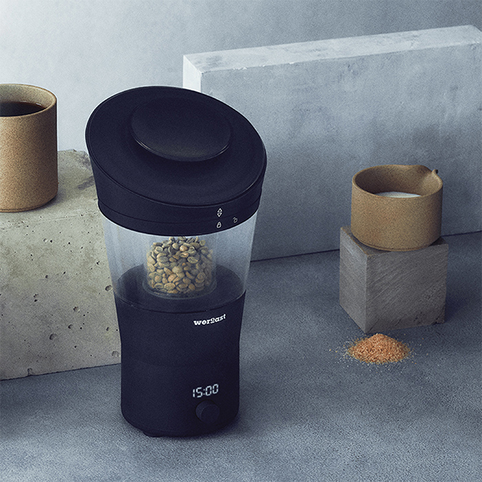 アンティークのような「シャビーな形」を探していくなかで、円錐形状に辿り着きました。針葉樹を思わせるまっすぐに伸びた円錐状フォルムの葉部分にセラミック炭のペイントを施しました。セラミック炭には粘土鉱物由来の優れた水分の吸放湿性と木炭由来の脱臭性、さらにニオイを選別して脱臭する機能(特許)も併せ持っています。